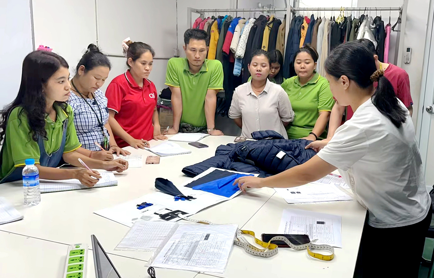 在缅甸的服装工厂里,技术人员正手把手对当地员工进行产前培训,这是公司打造“海外生产样板”的生动一幕。