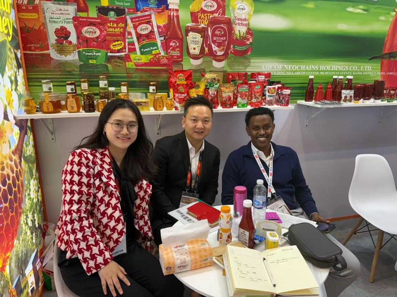步入2026年,安粮新链的海外市场布局持续向纵深推进,将目光投向中东及北非市场,精准切入食品消费赛道。在1月的迪拜海湾食品展上,安粮新链高效对接来自阿联酋、沙特、埃及等数十个国家和地区的专业客商,成功挖掘大批重点意向客户,番茄酱产品率先实现订单落地,更与也门客户达成定制化合作共识,敲定立袋、平袋番茄酱试单合作,顺利打开中东及北非食品市场的入口,为快消品类的全球化布局奠定基础。