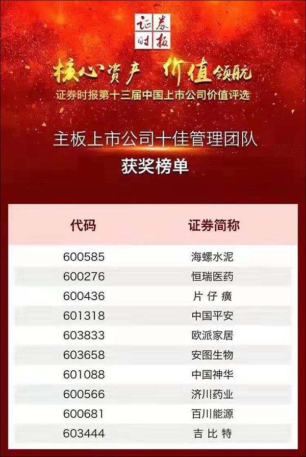 在严格的评选之下,海螺水泥凭借优异的成绩荣登榜单,是资本市场及机构投资者对海螺水泥的充分认可。