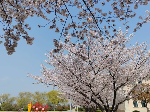最爱厂区的樱花大道,午休时走在树下,簇簇粉白的樱花密密匝匝缀在枝头,如云似霞。微风掠过,花瓣轻轻飘落,落在肩头、落在草坪,细碎的美好裹着春日的暖意,迎面而来。平日里伏案工作的疲惫,好像都被这漫天樱色抚平,脚步不自觉放慢,只想好好感受这份独有的惬意。