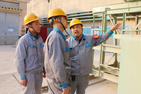郎益增(右一)在现场进行安全检查