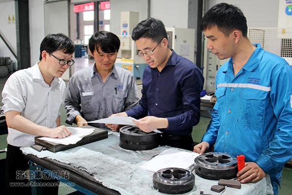 王春留(右二)正在和同事研讨问题