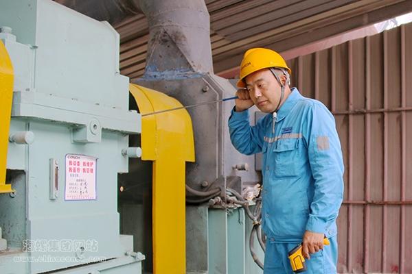 周峰还充分发挥专业优势,积极参与海外项目建设。2015年,周峰参与印尼SB1总包项目机电设备安装调试验收。试生产期间,煤粉输送泵频繁跳停,作为老钳工,他通过封堵部分喷口减少内部旋流阻力解决了这一问题。原煤取料机减速机因齿轮箱油标标识误差大,致使减速机油位低高速轴轴承抱死,周峰带队通过悬空吊装拆卸分解,减速机修复试机高速轴温度达到75℃后缓慢下降,他拿着听音棒,满足地对身边同事说:“游隙控制在0.07—0.08mm,大一点小一点绝对听不到这细腻的声音。”