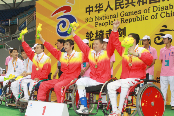 在击剑比赛中获得优异成绩(前排右二为范俊)