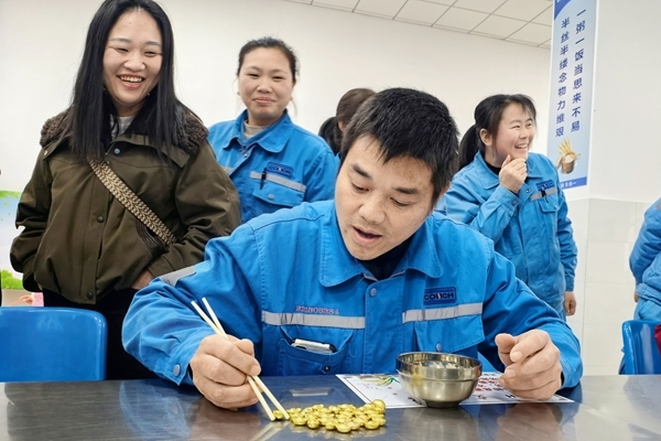 “财源广进·眼疾手快夹‘元宝’”活动,三人一组限时比拼,参与者需用筷子夹起滑润的金色“元宝”,并快速移至碗中。游戏中既有稳中求快的策略,也有巧劲与耐心的考验。随着计时开始,现场不时传来欢笑与鼓励声,无论是成功夹起时的喜悦,还是“元宝”滑落时的轻叹,都让这场象征“招财进宝”的传统趣味活动显得格外生动热闹。