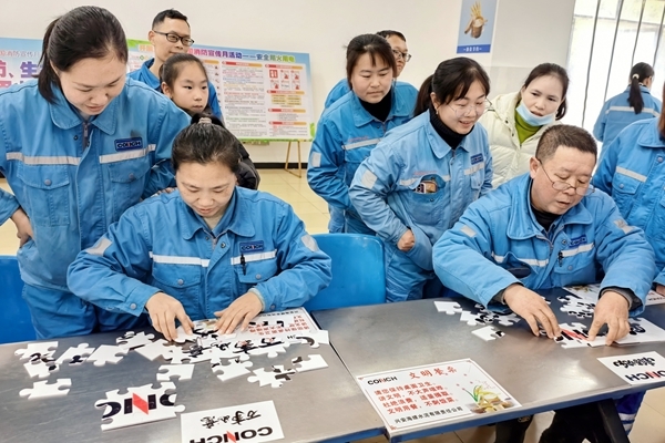 在本次迎新春活动中,“拼出未来·新年‘拼’好运”拼图游戏以其独特的设计和寓意深受喜爱。以海螺水泥标识为核心视觉元素,巧妙融入春节传统纹样与吉祥符号,既彰显企业文化认同,又传递出浓浓的年节氛围。参与者凝神聚力、专注拼合每一块图块,争分夺秒呈现完整画面。这一过程不仅考验参与者的观察力与耐心,更通过视觉化的方式,深化了职工对企业品牌的感知与认同,也寓意着每一位职工都是企业宏图的一块重要拼图,共同拼出新年新气象。