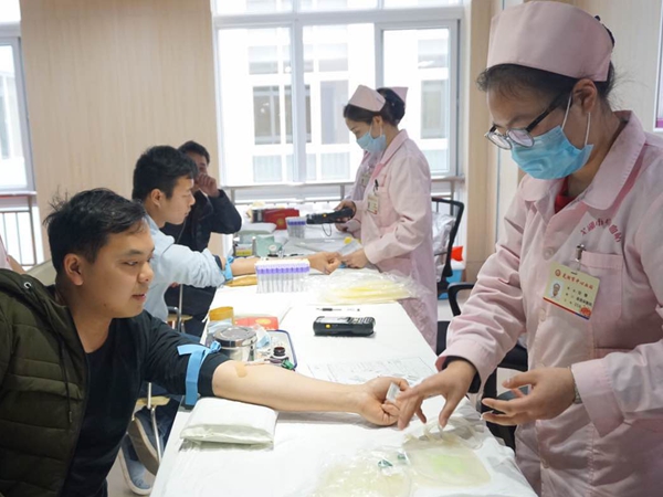 2月26日下午,参加义务献血的员工纷纷来到新落成的海螺医院八楼健康中心,在医务人员的指引下,员工们认真填写无偿献血表格,登记个人信息,了解献血的注意事项,井然有序的进行血压测量、验血、献血。