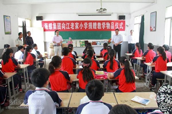 31日上午,在江老家小学二年级教室举行了捐赠物品仪式,江老家小学校长纪振环介绍了集团的基本情况,代表学校全体师生向海螺集团表示了衷心的感谢,感谢集团给予的精神食粮和物质帮助,希望全体同学们要牢记恩情,发奋学习,不辜负社会各界的关心和期望。