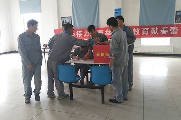 公司在生活区食堂、矿山食堂、综合食堂内张贴了倡议书,设置了募捐箱,广大员工积极响应,踊跃捐款,以实际行动对水东小学的困难学生表达爱心和关怀。