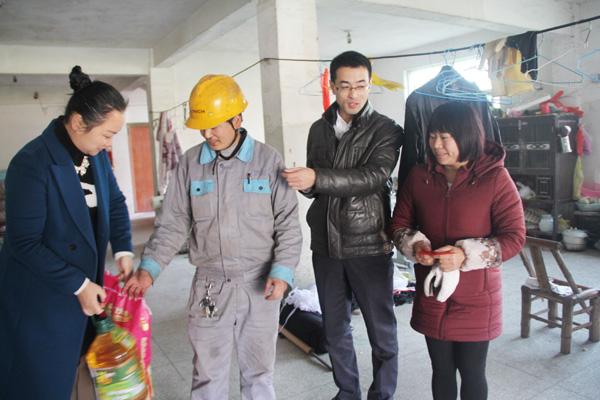 在给邵良芳一家送去慰问金及生活物资时,徐总深切的询问年货备的怎么样了,邵良芳腼腆的回答正在购置中,感受到徐总深切的关心,邵良芳夫妇对公司党委、工会以及领导的关心表示真诚的感谢,并表示积极面对眼前的困难,把公司党委、工会及领导的关心化作前进的动力,为公司的发展贡献自己的绵薄之力。