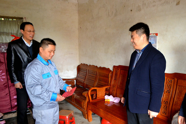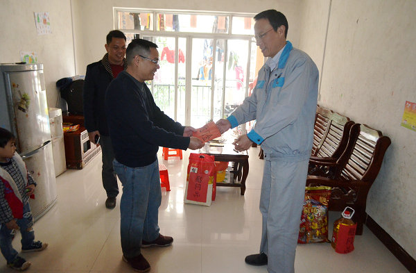 春节将至,困难党员、员工的冷暧,公司党委和领导更是惦挂在心头,为使困难党员、员工过上一个欢乐、祥和、安定的新春佳节,1月20日下午,北流海螺公司工会主席周德刚、工会副主席李锋及工会有关人员组成慰问小组,带着公司浓浓的关怀之情,对公司困难党员、员工进行了慰问。