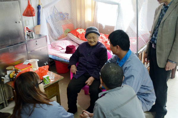 与老人亲切交谈