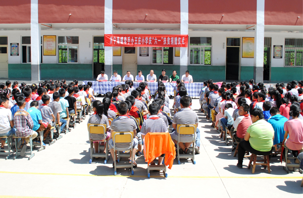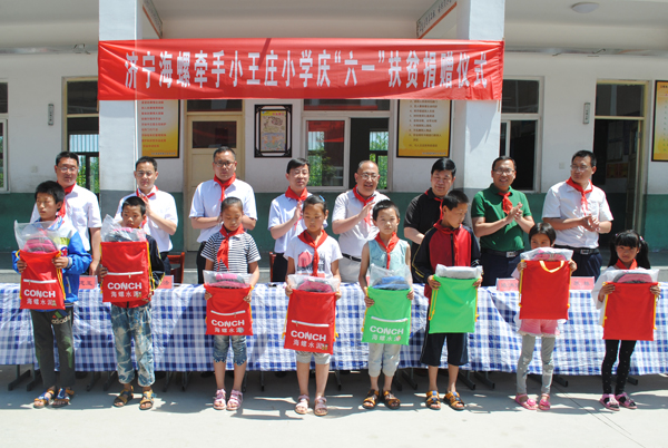 在“六一”国际儿童节到来之际,为让公司周边农村小学生度过一个开心快乐的儿童节,营造和谐关系,济宁海螺与泗水县海螺项目办、苗馆镇政府等于5月26日到小王庄小学开展扶贫走进学校活动。济宁海螺常务副总经理荆云、海螺项目办主任王庆春、副主任陈洪强、宣传部尤明文、苗馆镇党委副书记王立法带着节日的礼物和祝福看望慰问孩子们,给他们送去学习书籍、书包等节日礼物。