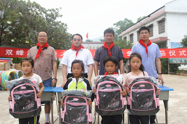 活动最后,大家一起为学生们发放了书包等爱心礼品,祝同学们度过一个快乐而有意义的节日!