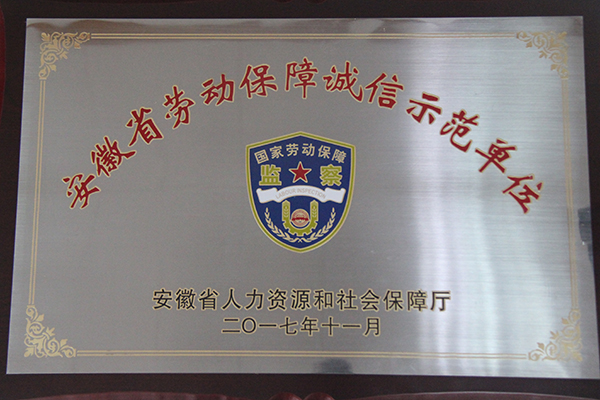 12月27日,铜陵市人社局监察支队代表安徽省人力资源和社会保障厅授予铜陵海螺公司“2017年安徽省劳动保障诚信示范单位”荣誉称号,充分肯定了铜陵海螺规范劳动管理与保障员工权益等方面的工作。