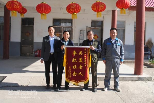 敬老院院长将一面印有“关爱老人 奉献社会”八个金色大字的锦旗送到赵总手中,感谢海螺多年来给予敬老院老人们的关爱。