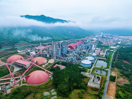 阳春海螺有2条熟料生产线,其中1条为12000t/d生产线,从项目规划到全部建成投产,前后历时6年,俯瞰万山翠绿,那一抹“海螺红”格外亮眼。