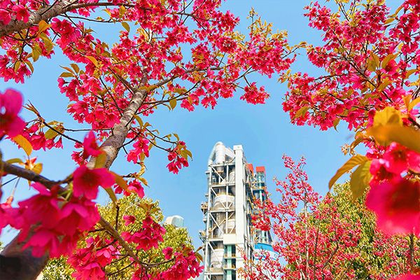 “山深未必得春迟,处处山樱花压枝”。在劳模创新工作室前,一排排樱花树绚烂如云霞,春风拂面,花瓣如雪般飘落。