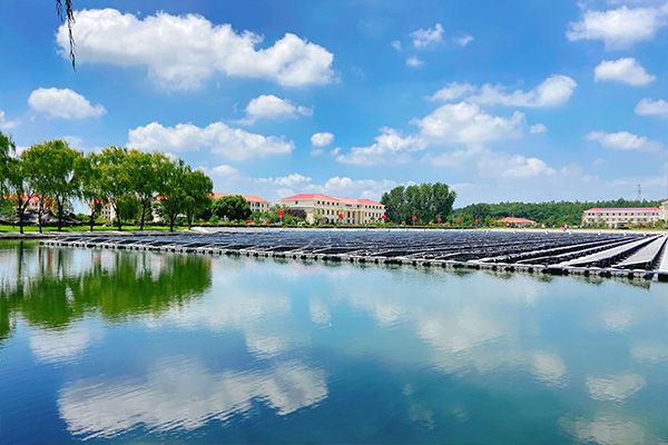 “月明船笛参差起,风定池莲自在香”。莲花在湖面静静地绽放,诉说着不染尘埃的故事,亦为这厂区增添了几许如诗如画的浪漫。