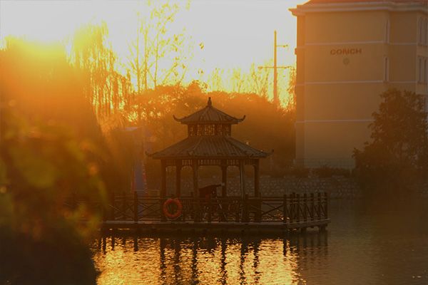 “秋风锦水乐无涯,独上亭轩四望嘉”。你看,晚霞为湖面染上一层熔金之色,秋水荡漾,波光粼粼,我想无论是谁,都会被这幅灵动的画卷折服!
