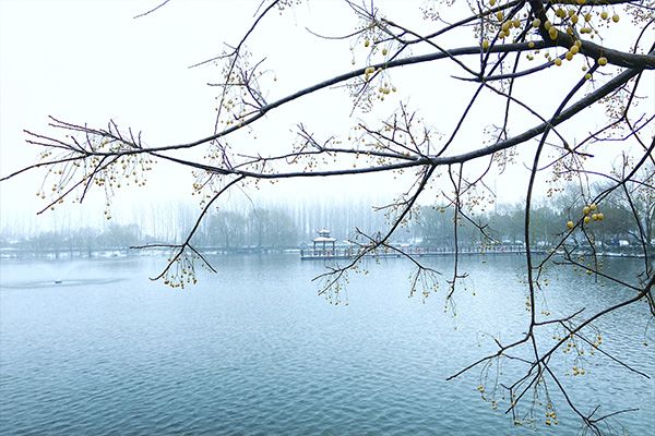 “瑶台雪花数千点,片片吹落春风香”。冬日的海螺湖面银装素裹,细雪纷飞停留枝头,似花似雪,落于亭台之上,春风吹拂,吻过花朵,带着花苞的淡香。
