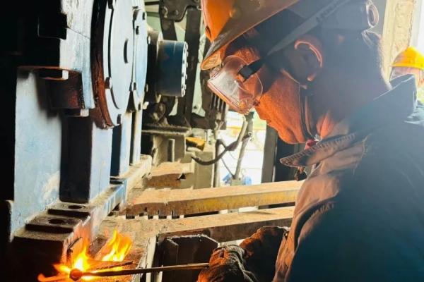 为保证风机转子顺利更换,维修工张志全神贯注地对零部件进行切割,迸发的火光照亮了他的面庞。
