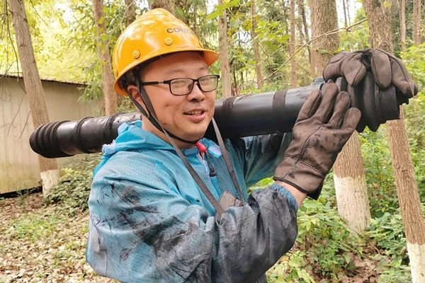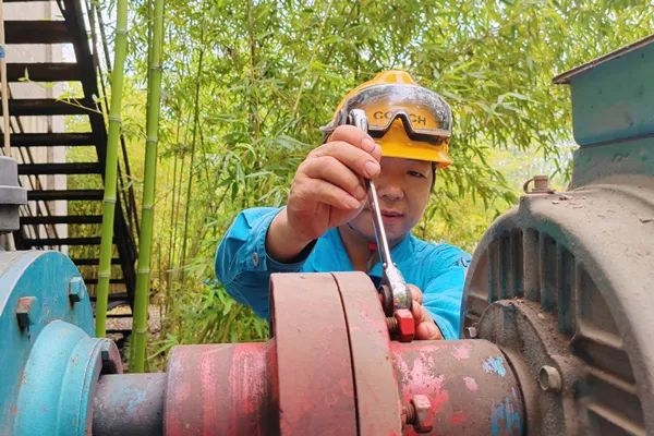 制造分厂电气维修工李明春正在对1110皮带电机进行更换,提高运行效率。