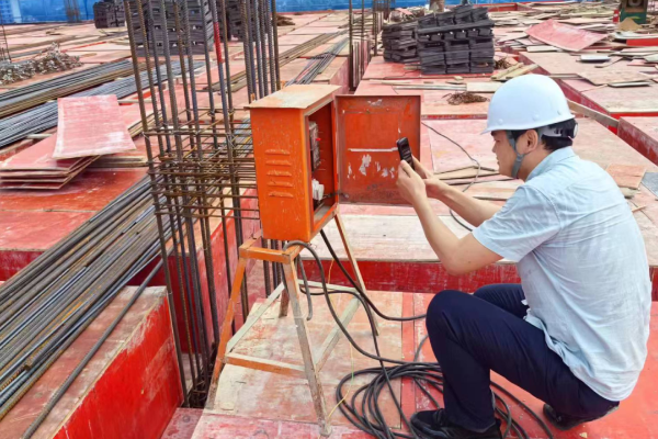 安天利信全过程咨询中心工作人员在国家计算机网络与信息安全管理中心安徽分中心综合机房楼项目进行安全隐患排查。(晋斌斌 摄)