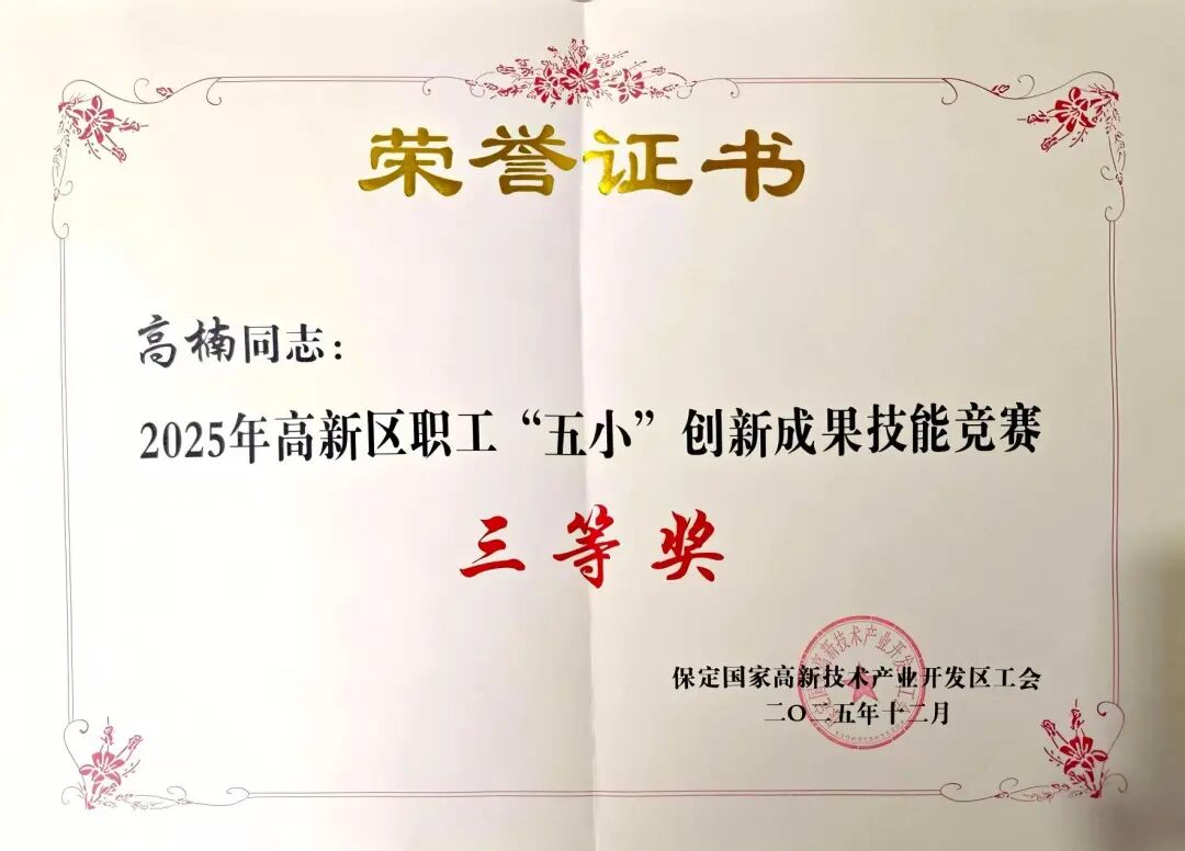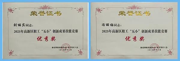 另外,安全环保处常务副处长刘丽宾和办公室行政后勤主管冯丽梅凭借各自的创新项目荣获高新区职工“五小”创新成果技能竞赛优秀奖。