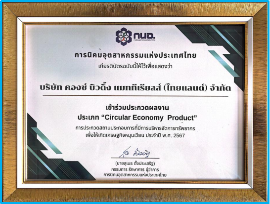 匠心筑绿赢国际认可 泰国公司产品获泰国工业部“循环经济产品”称号
