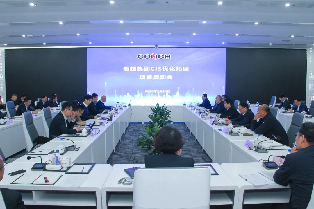 2026年2月24日,海螺集团在总部数控中心召开CIS优化拓展项目启动会。此次会议旨在立足集团“十五五”发展新阶段,全面启动企业形象识别系统(CIS)的优化升级工作,以文化软实力赋能集团“一基五业”高质量发展。集团党委书记、董事长杨军出席会议并作动员讲话。会议由集团党委副书记、总经理朱胜利主持,集团公司领导班子成员、集团相关部室主要负责人、各板块公司领导、相关部室负责人、项目合作方正邦创意(北京)品牌科技股份有限公司代表参加会议。