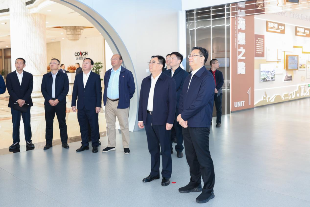 在朱胜利等陪同下,王雄飞一行参观了海螺集团展厅,详细了解海螺集团的发展历程、产业布局、技术创新等方面情况。
