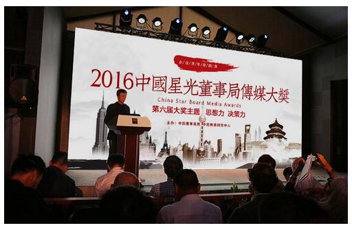 2017年1月19日,被誉为中国企业董事会最高荣誉奖项的2016第六届“中国星光董事局传媒大奖”在北京隆重揭晓。本届大奖以思想力和决策力为主题,力图展现大时代背景下,中国领袖企业者对未来和趋势的前瞻性思考。