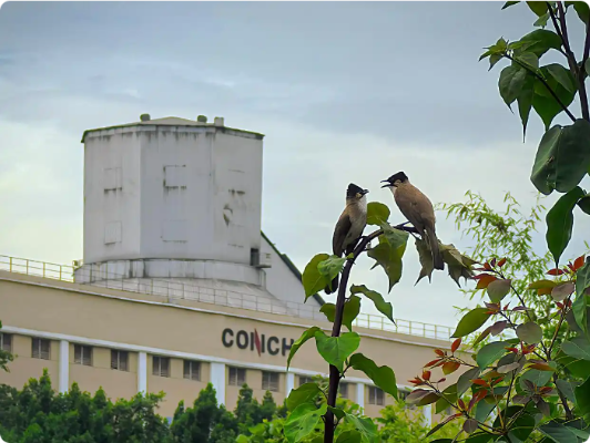 在重庆海螺水泥有限责任公司,鸟儿在厂区内的绿植上嬉戏。新华社记者 唐奕 摄