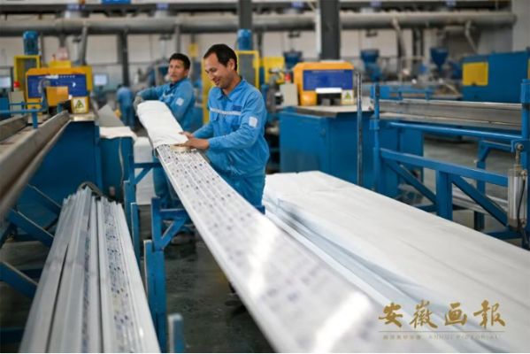 在皮山安徽工业园区海螺型材生产车间,工人们正在加紧生产塑料型材和铝合金型材。自2024年以来,企业累计产值近3亿元 ,纳税超610万元。