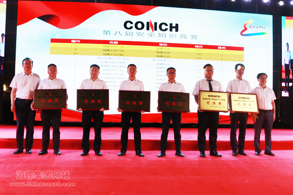 经过两个小时的精彩角逐,海螺水泥六队摘得桂冠,海螺水泥三队、海螺水泥四队荣获第二名,集团直属公司代表队、海螺创业代表队、海螺投资代表队获得三等奖,其他6支代表队获得优胜奖。荻港海螺、重庆海螺、海门海螺、宁波型材、新材料咸阳公司获“安全知识测试最佳组织单位”。
